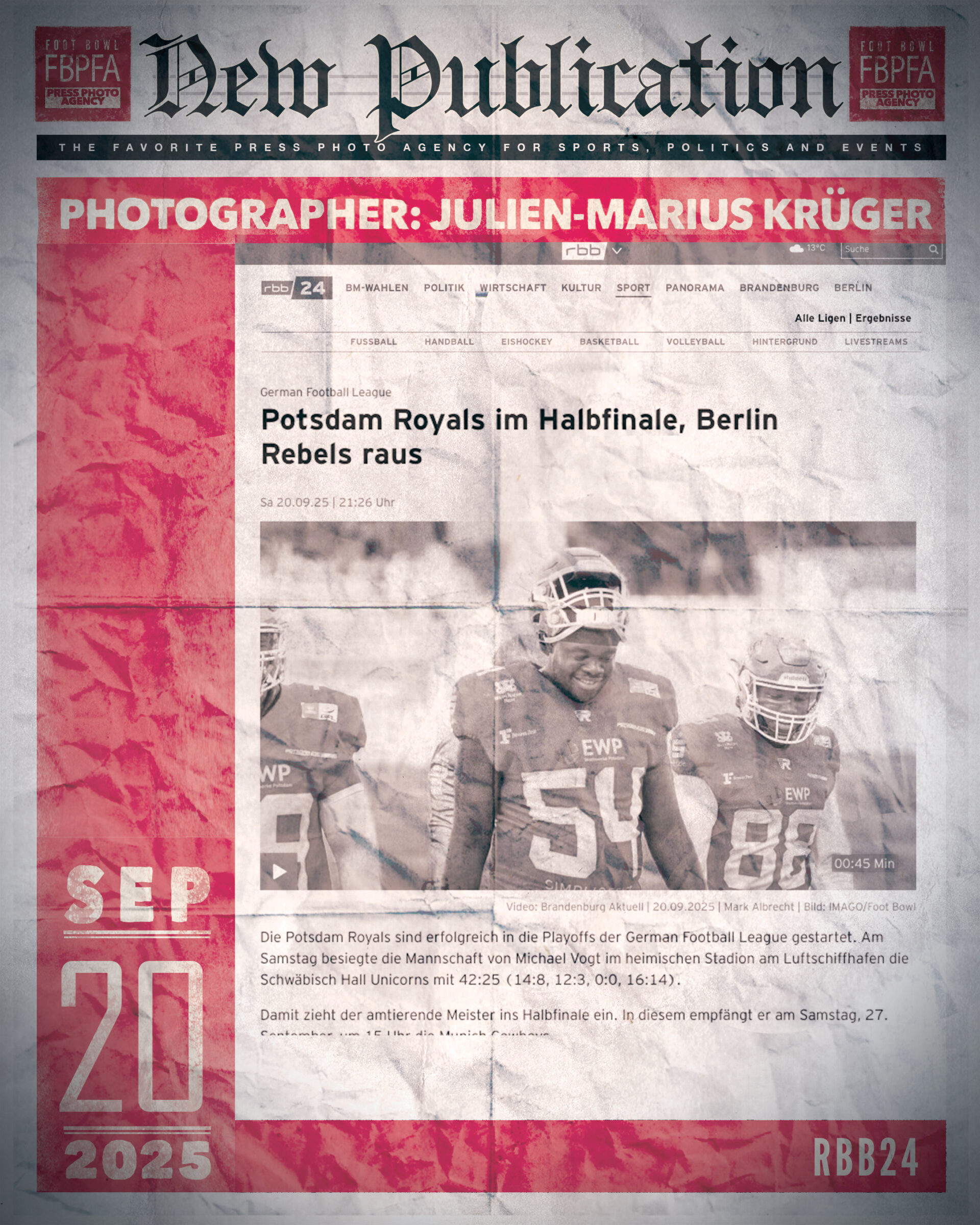 Julien-Marius KrügerPublicationRBB – Potsdam Royals im Halbfinale, Berlin Rebels raus by JUSTSHOTS20. September 20251. October 2025 Share0
